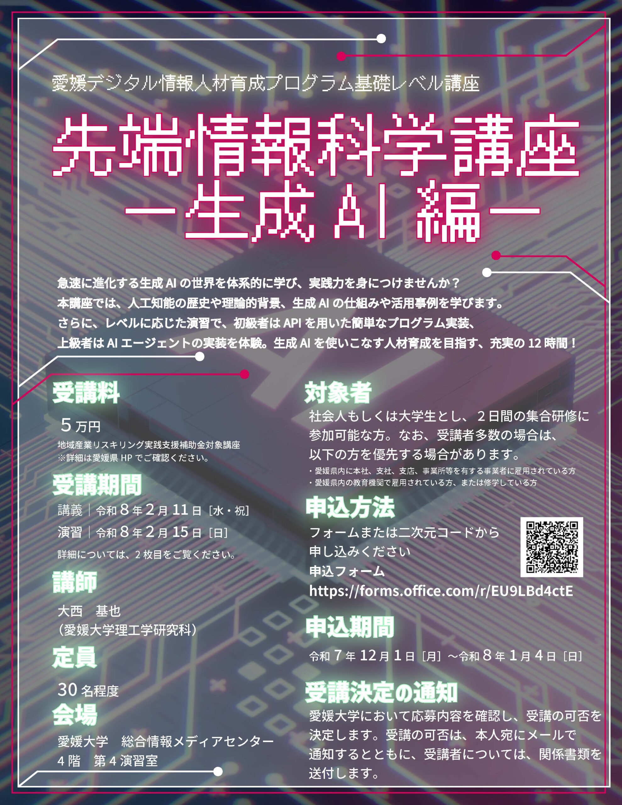 | 内容 | 先端情報科学講座 ―生成AI編― |